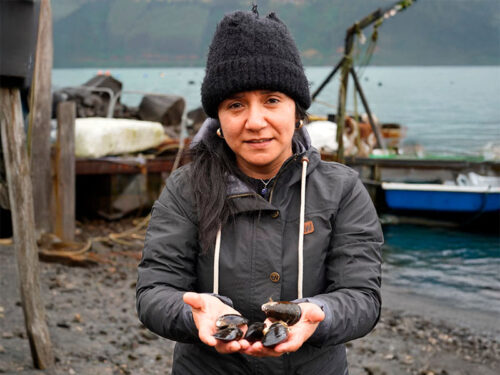 Andrea encontró su espacio en la dirigencia. Se convirtió en líder del Sindicato de Pescadores Artesanales Estrella del Sur y asumió la coordinación de la Red Nacional de Mujeres de la Pesca Artesanal, liderada por Sara Garrido, una mujer cuya fortaleza y empuje la inspiraron desde la primera vez que la vio. Desde esa posición, contribuyó a tejer un movimiento que atravesó las caletas de Chile, impulsando leyes, abriendo caminos y desafiando la idea de que el mar era solo territorio de hombres. Pero su labor no se detiene ahí. Andrea ha llevado su compromiso más allá, apostando por un modelo de pesca sostenible que preserve el equilibrio del mar y fortalezca a las comunidades pesqueras. Junto a su familia, impulsó un proyecto de agregación de valor que rescata saberes ancestrales y promueve una economía circular basada en el mitilus chilensis, un bivalvo (molusco) característico de su estuario. Su objetivo es evitar que los beneficios de la pesca artesanal se concentren en las grandes industrias y, en su lugar, lleguen directamente a quienes trabajan el mar con sus propias manos. “La pesca artesanal no es solo extraer del mar, es comprender su ritmo, respetarlo y devolverle lo que nos ha dado”, afirma. Para ella, el futuro del sector no está en la sobreexplotación, sino en la recuperación de prácticas sostenibles, el comercio justo y la consolidación de comunidades pesqueras.